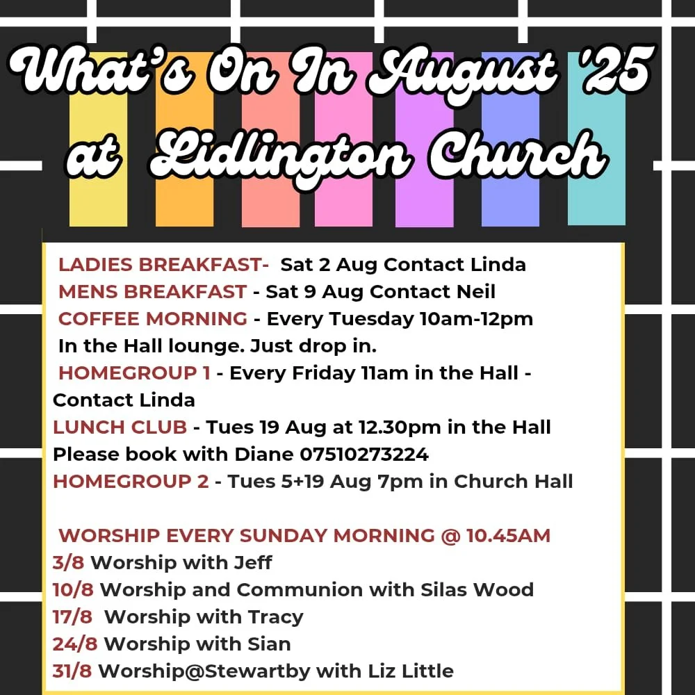 - Lunch Club — Tues 19 Aug at 12.30pm | In the Hall — Book with Diane (📞 07510273224)
